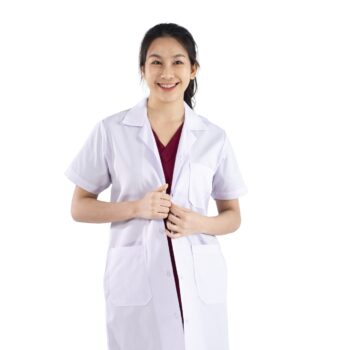 เสื้อกาวน์แพทย์ตัวยาวแขนสั้น สีขาว ผ้า TC ทวิล