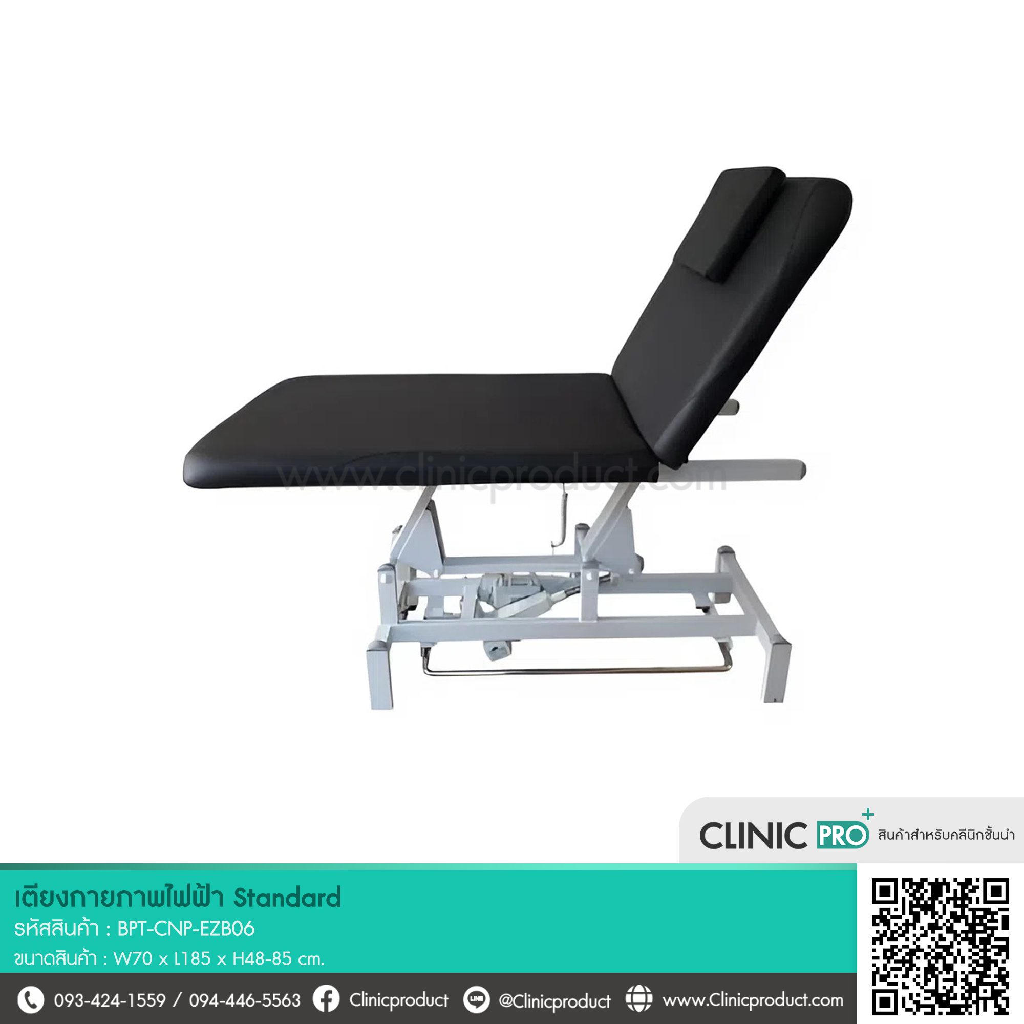 เตียงกายภาพไฟฟ้า Standard ปรับระดับด้วยรีโมท ขนาด 70×185 ซม. รองรับน้ำหนักได้ถึง 200 กก. เหมาะสำหรับคลินิกกายภาพและสปา