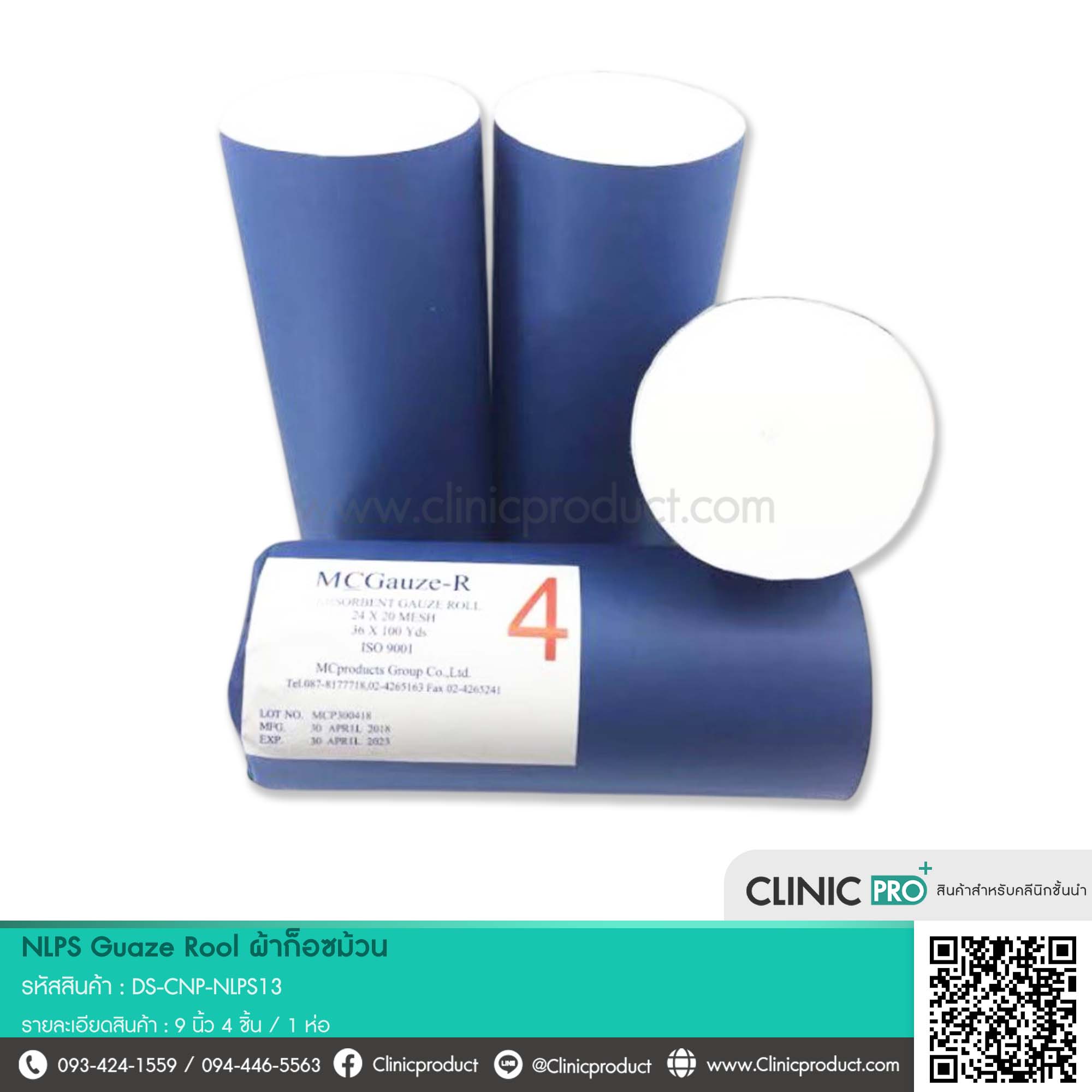 - ผ้าก็อซชนิดม้วนขนาด 9 นิ้ว (ประมาณ 23 ซม)