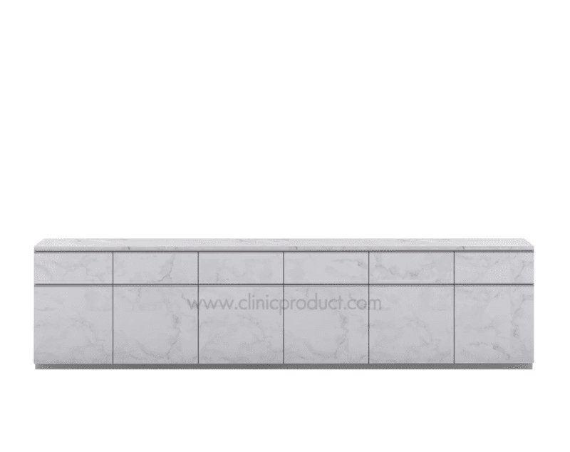 ตู้ OPD CASE (C6) | ขนาด W250 x D60 x H80 cm. เป็นตัวเลือกที่ตอบโจทย์สำหรับการใช้งานในคลินิกทุกประเภท ด้วยดีไซน์ลายหินอ่อนที่สวยงามและฟังก์ชันจัดเก็บที่ครบครัน
