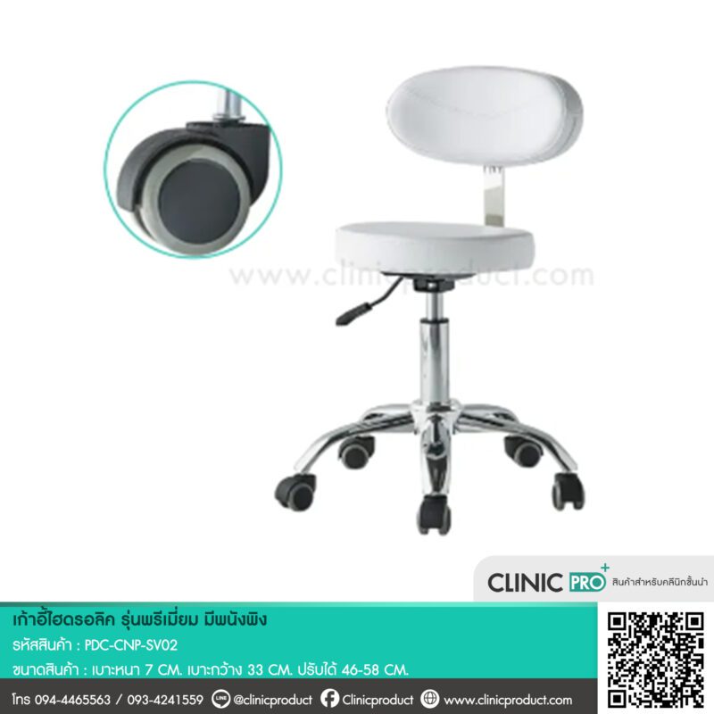 เก้าอี้หัตถการ มีพนักพิง Premium Hydraulic SV02 เก้าอี้ดีไซน์สวยงามมีความหลากหลาย แข็งแรง ทนทาน โดยมีฟังก์ชันการปรับระดับและการออกแบบที่เน้นคุณภาพสูงกว่ารุ่นทั่วไป