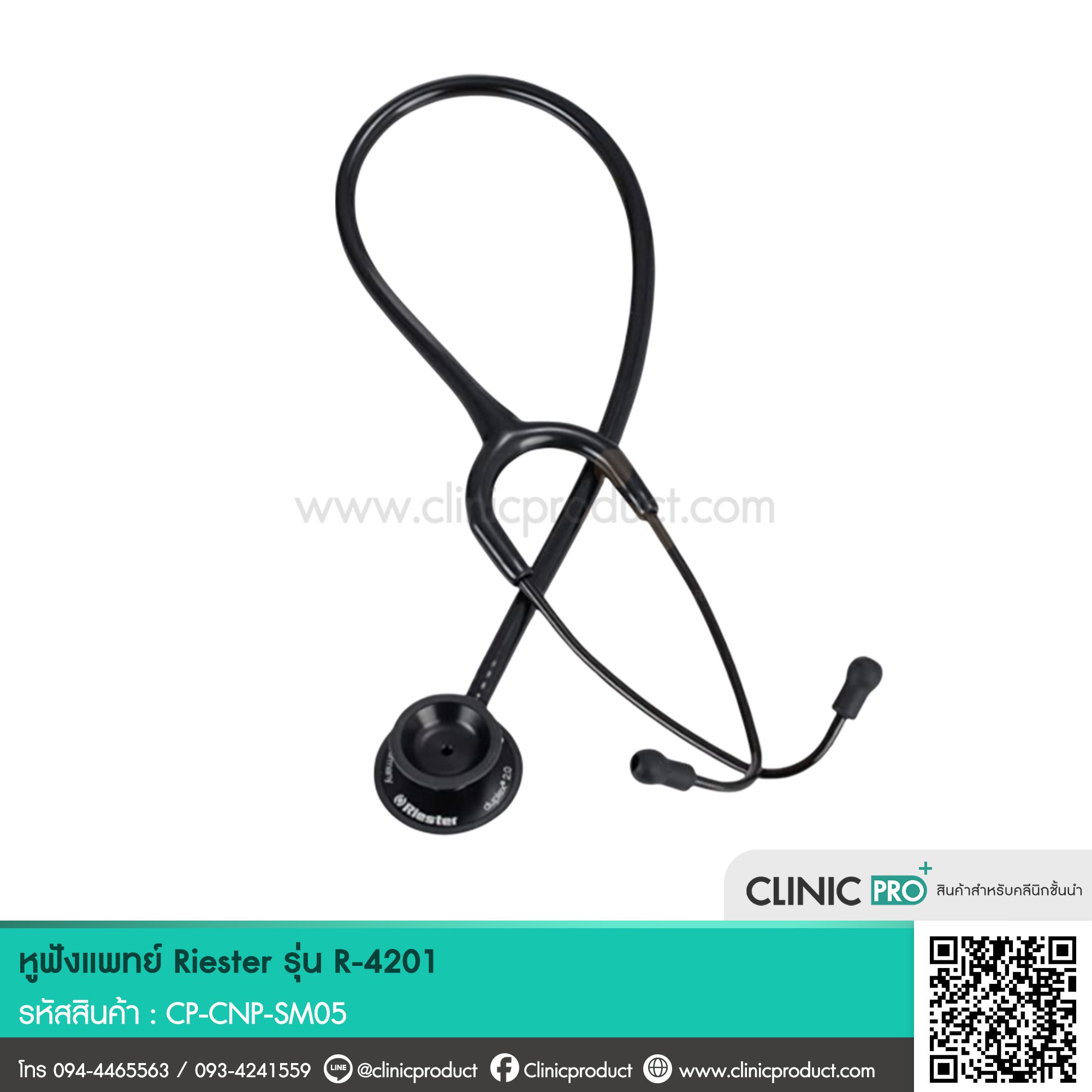 Riester R-4201 เป็นหูฟังทางการแพทย์ที่ออกแบบให้ใช้งานได้ครอบคลุมทั้งสำหรับเด็กและผู้ใหญ่ หัวตรวจผลิตจากอลูมิเนียมคุณภาพดี น้ำหนักเบา ให้ความแม่นยำในการฟังเสียงภายในร่างกาย พร้อมแผ่น Membrane ที่ช่วยให้รับเสียงได้ชัดเจนในทุกช่วงความถี่ โดยเฉพาะช่วงความถี่ต่ำที่ใช้ฟังเสียงหัวใจและปอด