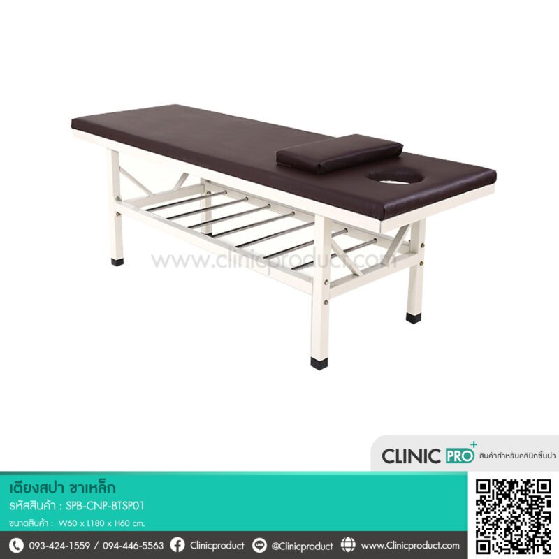 SPA BED เตียงสปาขาเหล็ก ออกแบบมาเพื่อรองรับการใช้งานในคลินิกสปา ร้านนวด และสถานเสริมความงามโดยเฉพาะ ตัวเตียงหุ้มด้วยหนัง PVC คุณภาพดี ทำความสะอาดง่าย ไม่สะสมเชื้อโรค มาพร้อมเบาะฟองน้ำหนา 8 ซม. ให้ความสบายขณะใช้งาน โครงสร้างขาเตียงทำจากเหล็กพ่นสีขาว แข็งแรงทนทาน สามารถรองรับน้ำหนักได้ถึง 200 กิโลกรัม น้ำหนักเบาเพียง 50 กิโลกรัม เคลื่อนย้ายได้สะดวก มีช่องเว้ารับศีรษะและหมอนเสริม ใช้เป็นได้ทั้งเตียงนวด เตียงแว็กซ์ หรือเตียงทรีทเม้นท์ต่าง ๆ